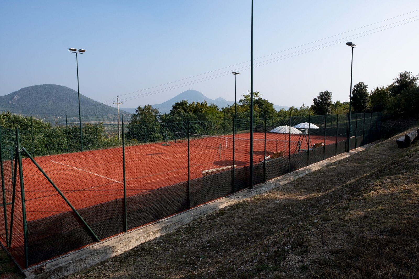 Il campo da tennis immerso nella natura dei Colli Euganei è un’incantevole gemma che si fonde armoniosamente con il paesaggio circostante. Le sue superfici immacolate si estendono tra prati verdi e alberi secolari, offrendo uno scenario idilliaco per una partita sotto il sole splendente o il cielo stellato. Circondato dalla quiete della natura, il campo da tennis emana un’atmosfera di tranquillità e divertimento, invitando gli ospiti a immergersi nel gioco e nell’esercizio fisico all’aria aperta. Con le colline che fanno da sfondo e il canto degli uccelli che fa da colonna sonora, è il luogo ideale per sfidare gli amici o allenarsi in solitudine, lasciandosi cullare dalla bellezza e dalla pace dei Colli Euganei.